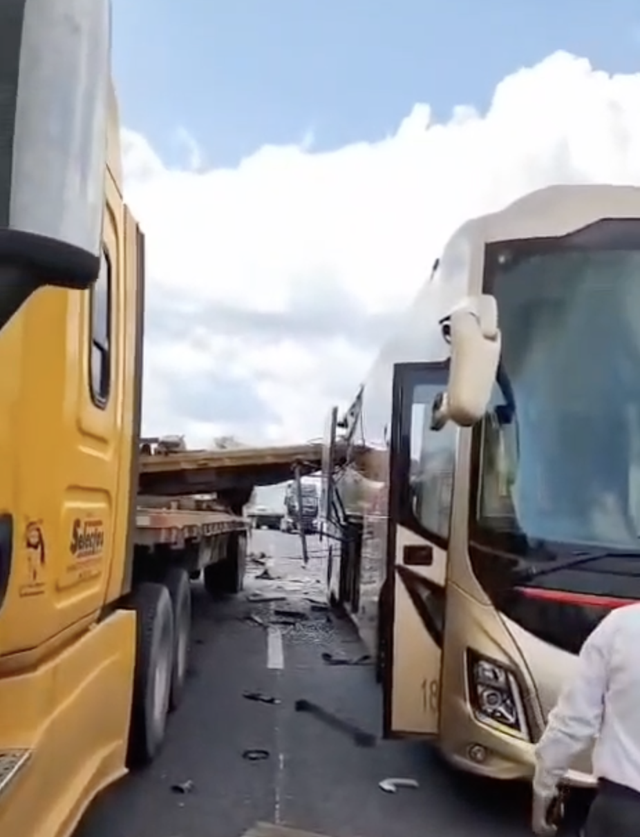 Este choque involucró a al menos seis vehículos, incluyendo un autobús de pasajeros de la línea Primera Plus.