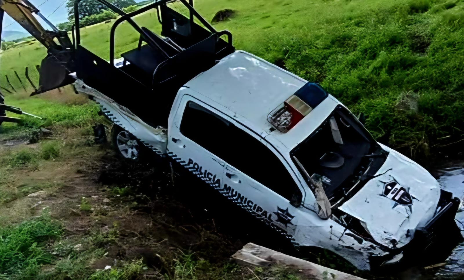 Sin embargo, a la altura de la localidad de Los Habillos, la unidad de la Policía Municipal con número económico 897 se salió de la carpeta asfáltica y volcó hacia un canal de riego.
