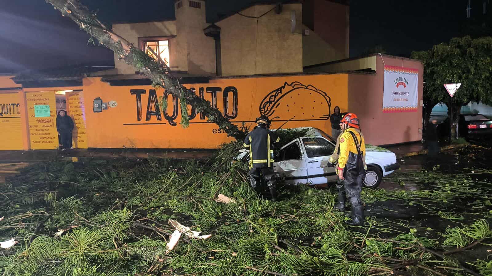 Una pareja que viajaba en un vehículo resultó lesionada tras la caída de un árbol sobre su auto en las inmediaciones de la colonia Cuauhtémoc.