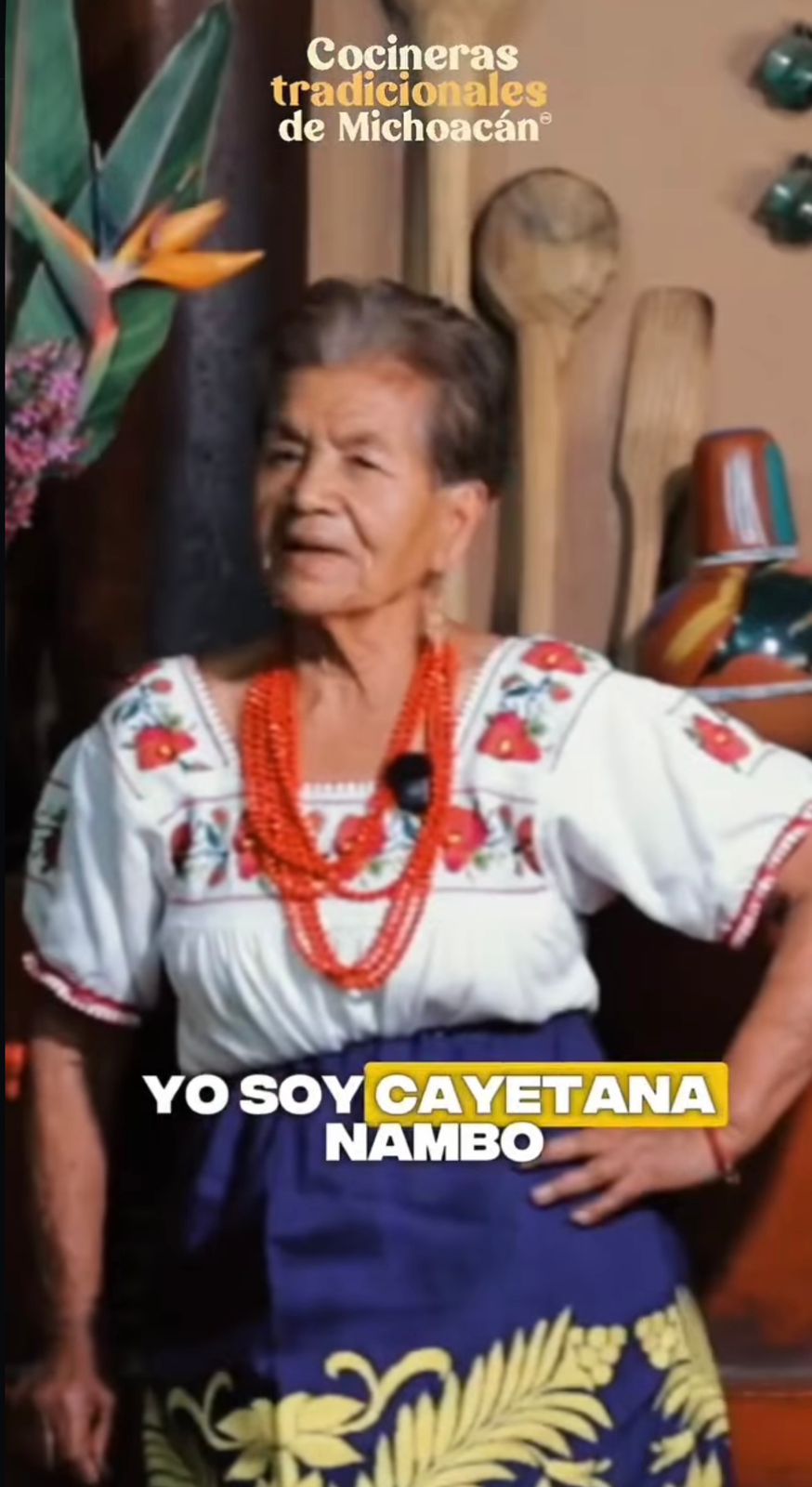 En el primer clip compartido en las redes sociales de la Sectur, aparece Cayetana Nambo Rangel, maestra cocinera tradicional michoacana originaria del municipio de Erongarícuaro, una mujer apasionada por la cocina de su región y de las enseñanzas de su madre.