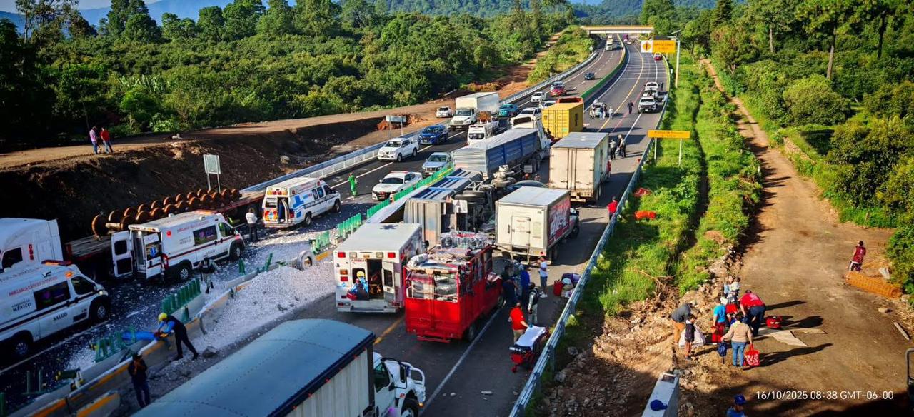 Saldo total de 16 lesionados, dejó el accidente registrado en kilómetro 86 de la autopista Siglo XXI a la altura de la antigua caseta de San Ángel.