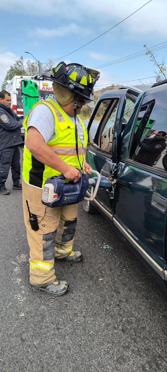 De inmediato acudieron al lugar paramédicos y bomberos de Protección Civil Estatal, quienes observaron que dos vehículos estaban colisionados de frente. Al revisar, confirmaron que uno de ellos no tenía heridos, pero el segundo vehículo, de color negro, tenía a su conductor atrapado y herido. Procedieron a utilizar equipo hidráulico para rescatarlo y trasladarlo a un hospital para su atención médica.