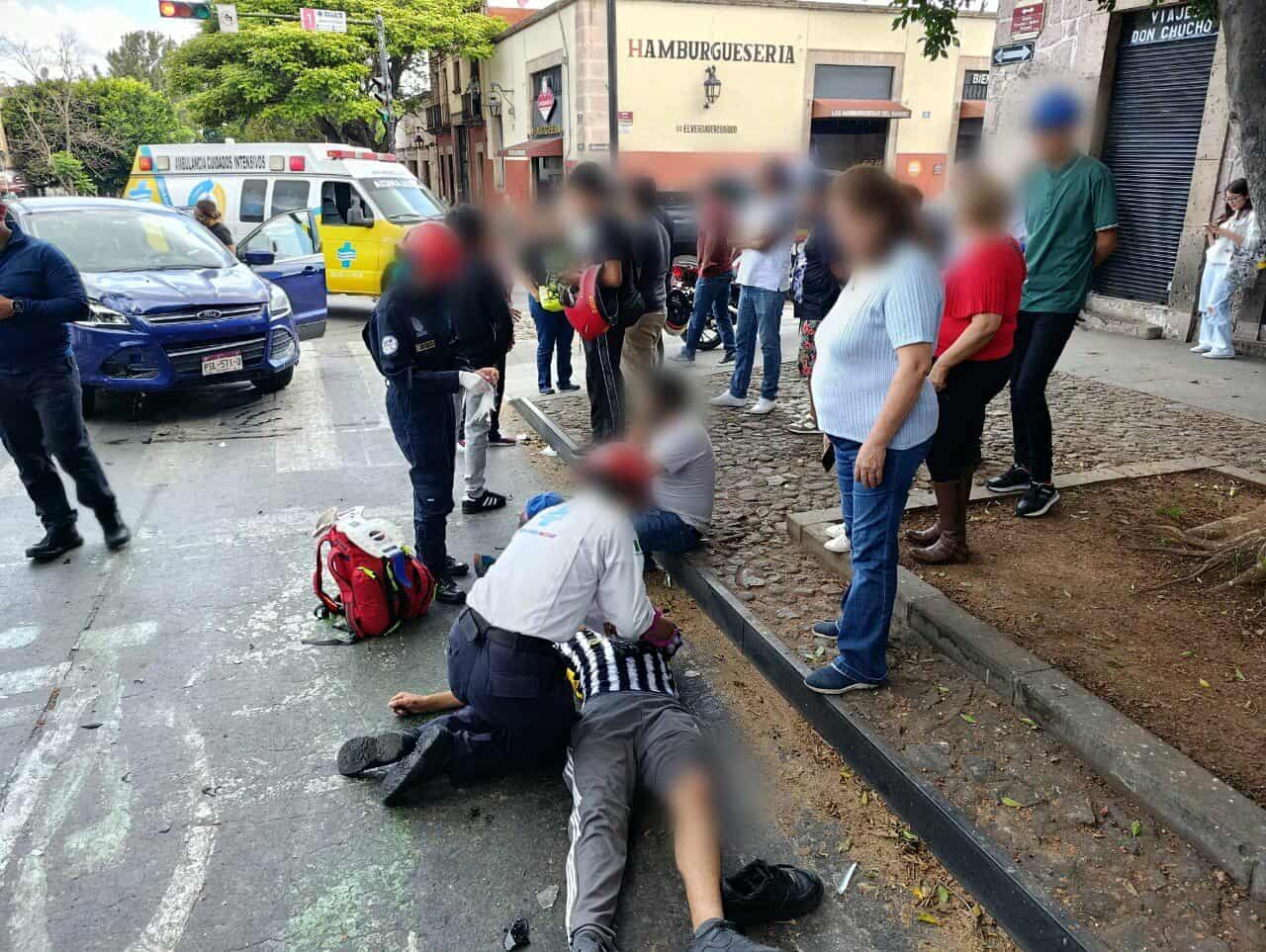 Se registró un choque entre una camioneta y una motocicleta que dejó dos masculinos lesionados sobre la avenida Madero Poniente, en el Centro de Morelia.
