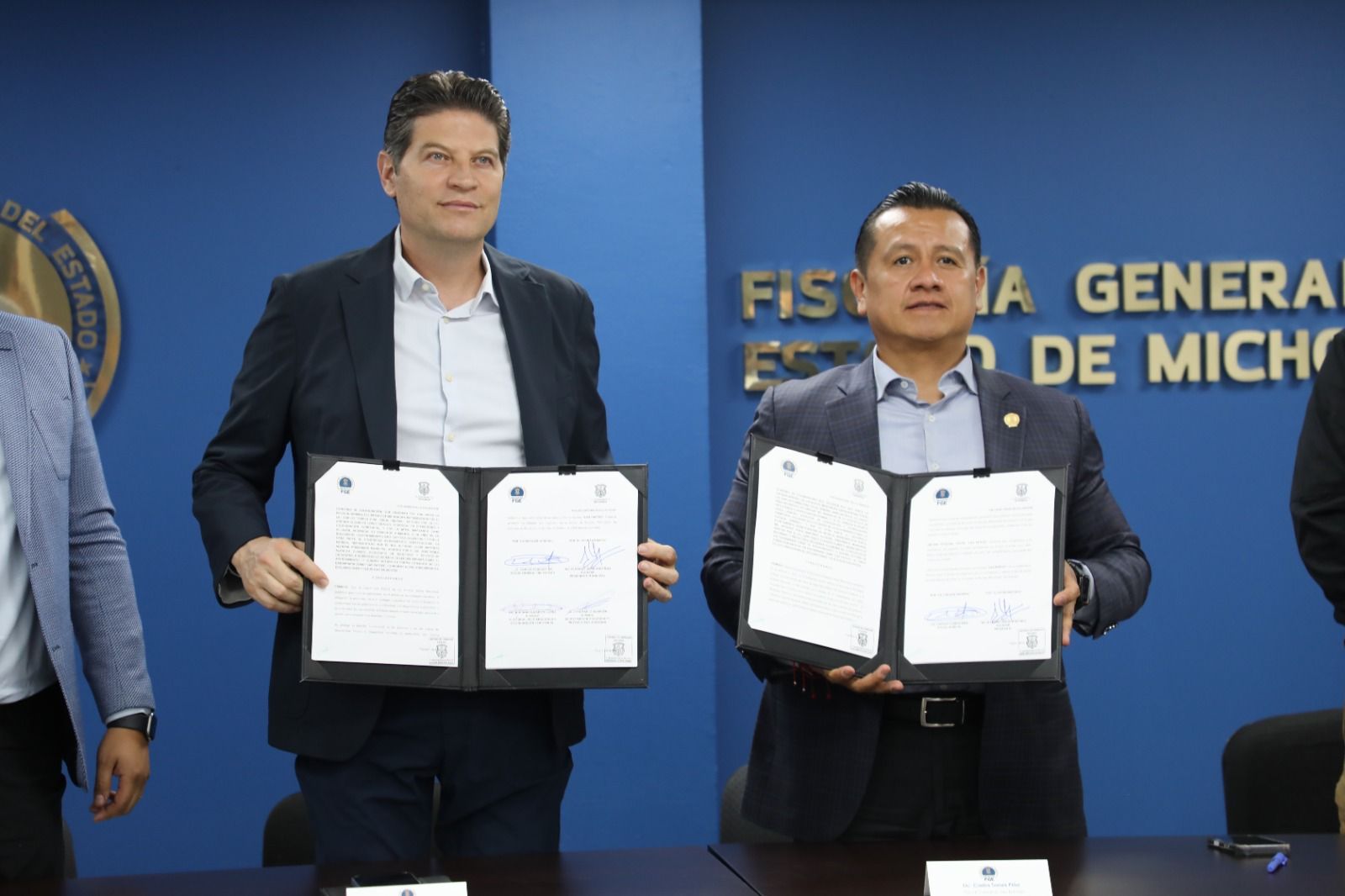 En un acto de coordinación estratégica para fortalecer la seguridad y la procuración de justicia en la capital del estado, la Fiscalía General del Estado de Michoacán (FGE) y el H. Ayuntamiento de Morelia firmaron tres convenios de colaboración en materia de investigación de delitos de alto impacto, recepción de denuncias a través de medios digitales y búsqueda inmediata de personas desaparecidas o no localizadas.