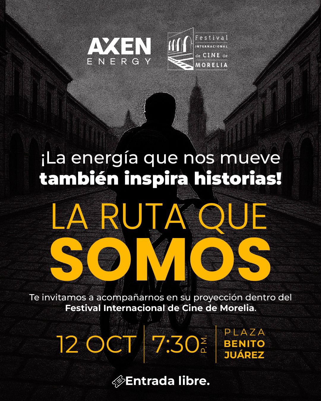 Axen Energy, en colaboración con Horizonte Colectivo, presentará el documental La Ruta que somos, esto en la plaza Benito Juárez de Morelia, el próximo 12 de octubre de 2025, en el marco del Festival Internacional de Cine de Morelia.