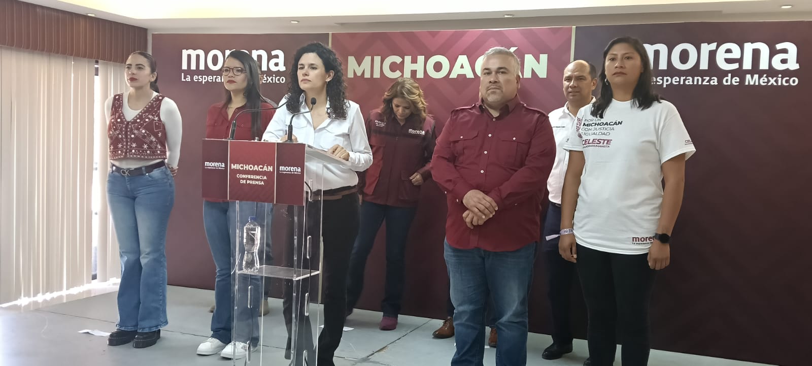 De visita en la capital michoacana, la presidenta nacional de Morena, Luisa María Alcalde, encabezó una rueda de prensa junto al dirigente estatal del partido, Jesús Mora, y los senadores Celeste Ascencio y Raúl Morón, donde expuso el plan municipalista del Consejo Nacional, informó sobre el avance en la afiliación de militantes y reiteró que las candidaturas del partido se seguirán definiendo mediante encuestas domiciliarias, tal como marcan los estatutos.
