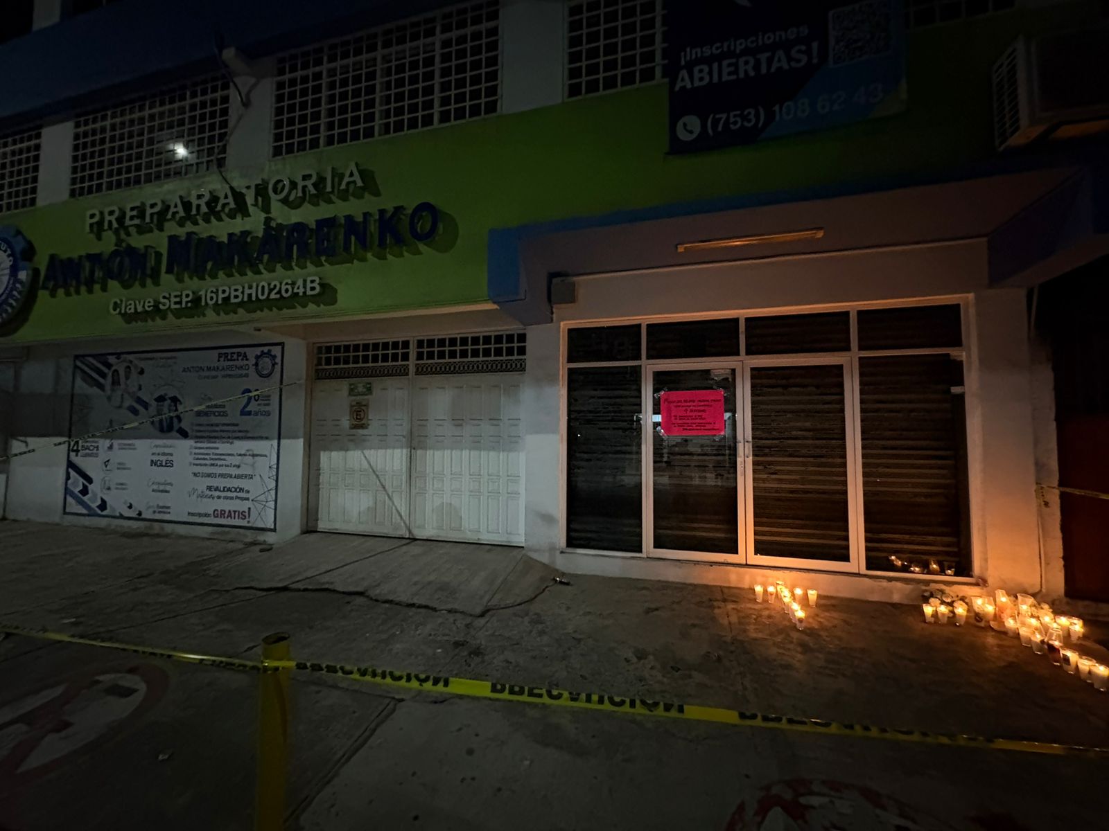 La madrugada se volvió más larga de lo normal afuera de la funeraria “Cuatro Amigos”. El silencio, roto apenas por el murmullo de familiares y el llanto contenido, envolvía el lugar donde es velada la maestra María del Rosario Sagrero, asesinada un día antes dentro de la preparatoria “Antón Makarenko”.