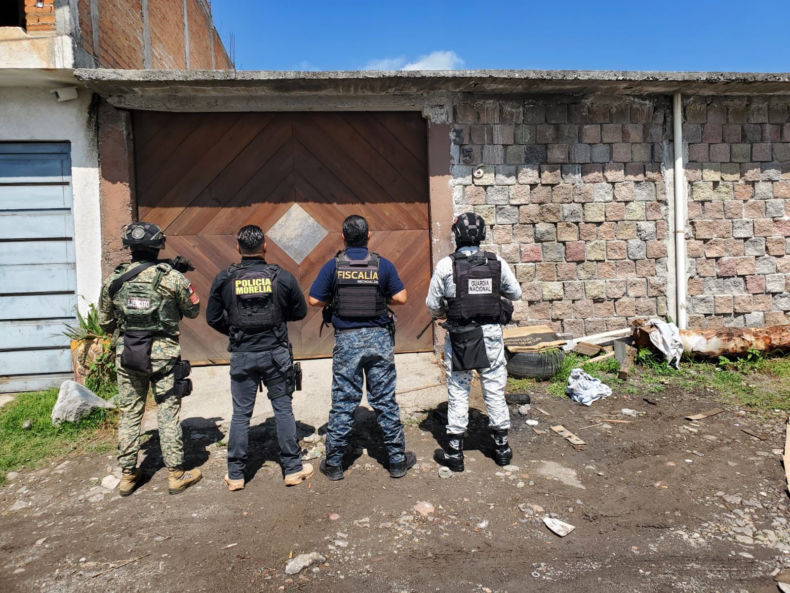 Para garantizar la seguridad perimetral durante el cateo, se contó con la colaboración de elementos de la Policía Morelia, la Secretaría de la Defensa Nacional (SEDENA) y la Guardia Nacional.
