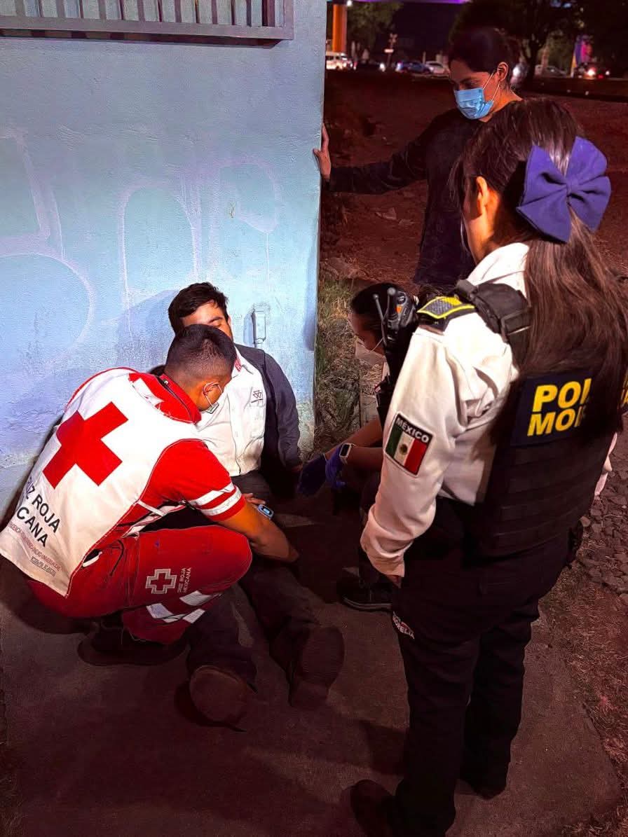 Paramédicos de la Cruz Roja, delegación Morelia, brindaron asistencia oportuna a un hombre que resultó lesionado tras caer a las vías del ferrocarril.