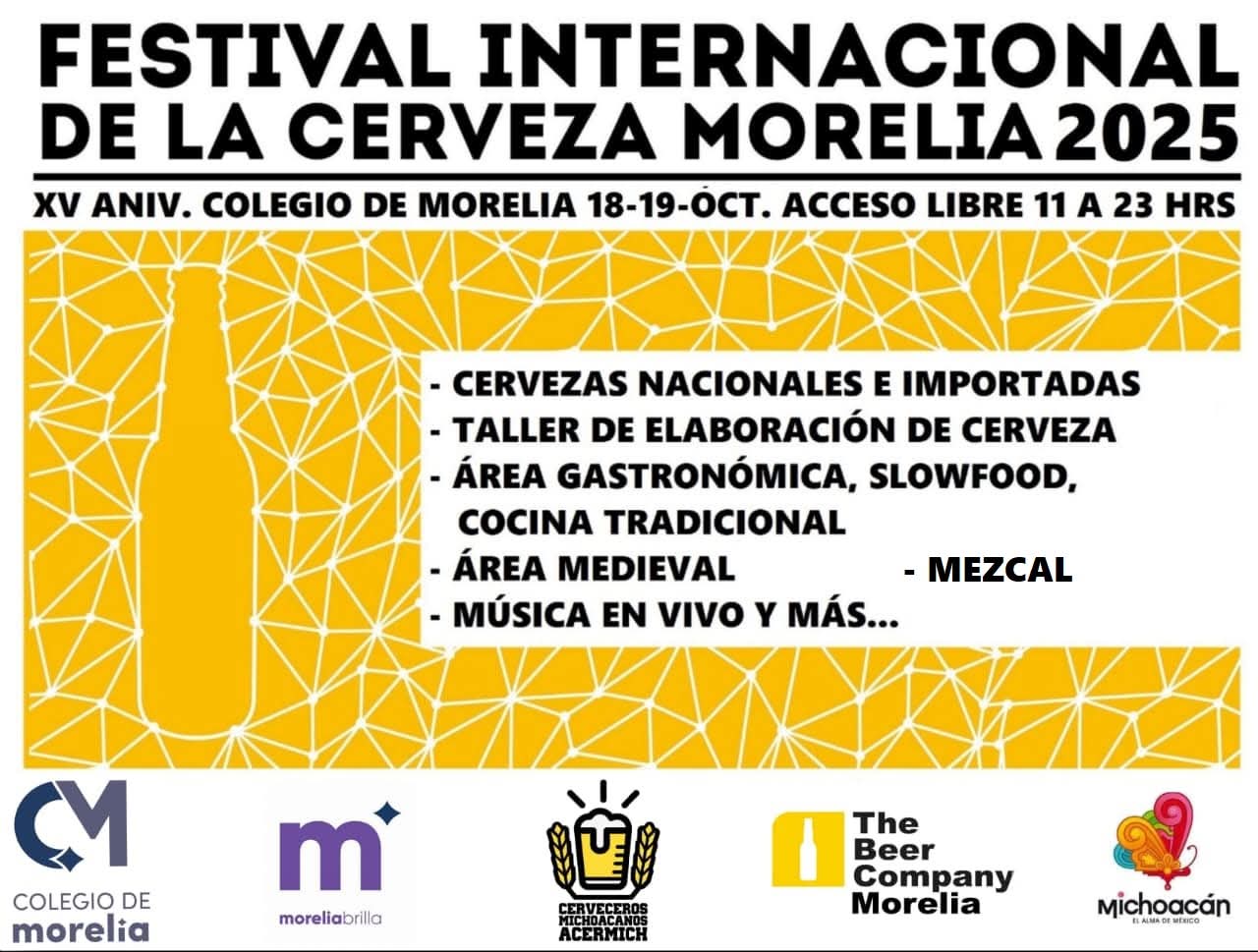 La cultura líquida de Michoacán está de fiesta con el 15 aniversario del Festival Internacional de la Cerveza de Morelia, que se realizará el próximo 18 y 19 de octubre, informó la Secretaría de Turismo del estado (Sectur), dependencia dirigida por Roberto Monroy García.