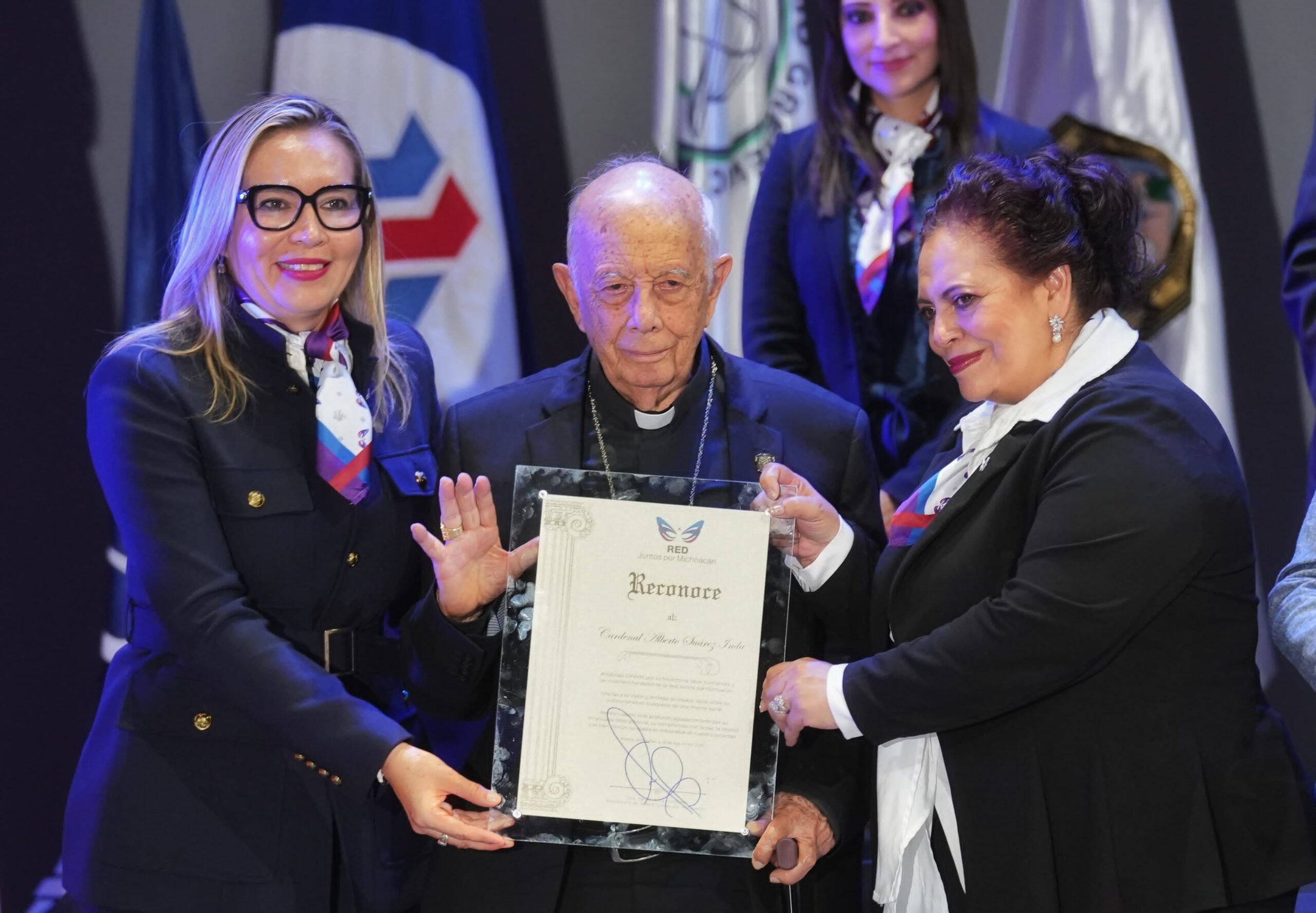 La rectora destacó la labor de los fundadores de la Red Juntos por Michoacán, y de manera especial la presencial del cardenal Alberto Suárez Inda, quien dijo, supo mirar más allá de su tiempo y comprender que la unión de los esfuerzos, el diálogo entre niveles educativos y el compromiso con la sociedad eran el camino para forjar y formar generaciones libres, críticas y capaces de transformar su entorno, por lo que aseguró que es profundamente significativo que se entregue una presea que lleve su nombre.