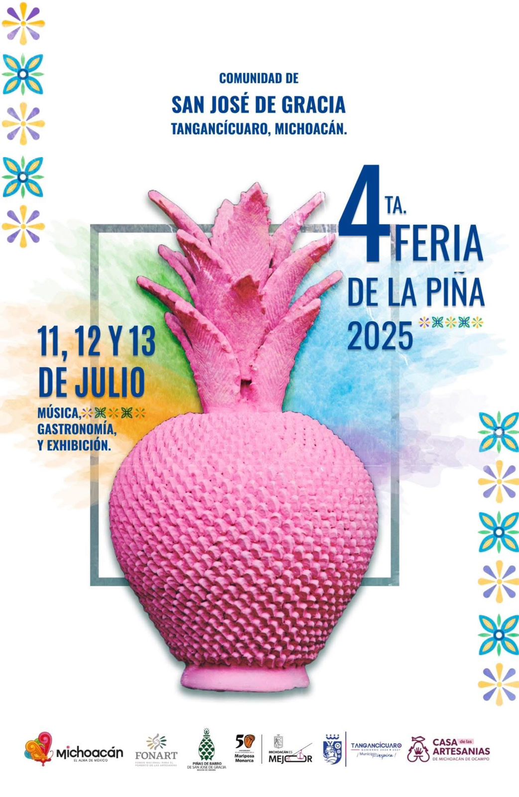 La cuarta edición de la Feria de la Piña de San José de Gracia, localidad de Tangancícuaro, ya tiene fecha, se realizará del 11 al 13 de julio, informó la Secretaría de Turismo de Michoacán (Sectur), dependencia encabezada por Roberto Monroy García.