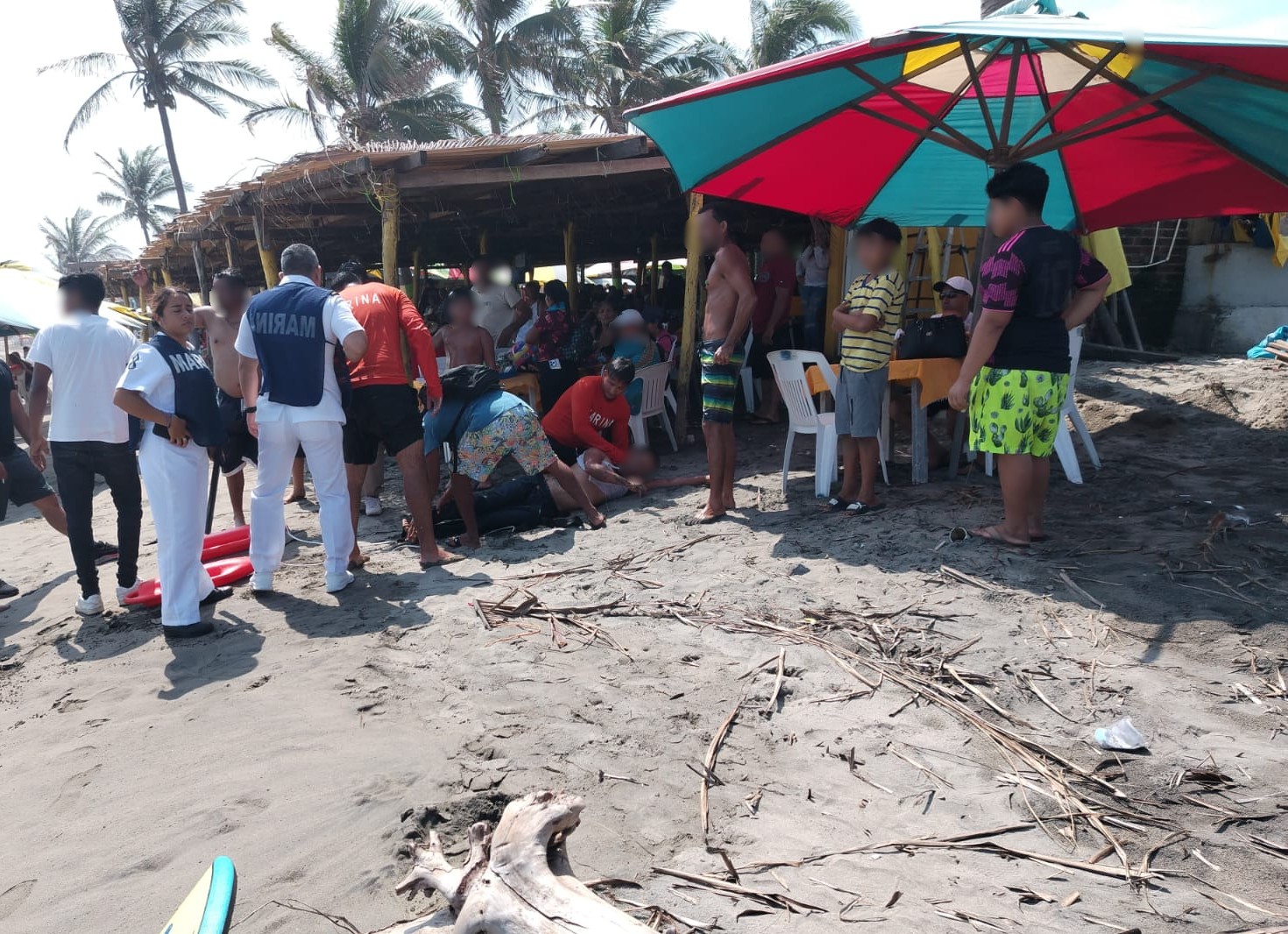 El incidente ocurrió cuando el personal naval, desplegado en el puesto de salvavidas de Playa Azul, observó a un hombre en peligro de ahogamiento mientras nadaba en el mar. De inmediato, los elementos navales acudieron al lugar para llevar a cabo el rescate y brindar auxilio a la víctima.