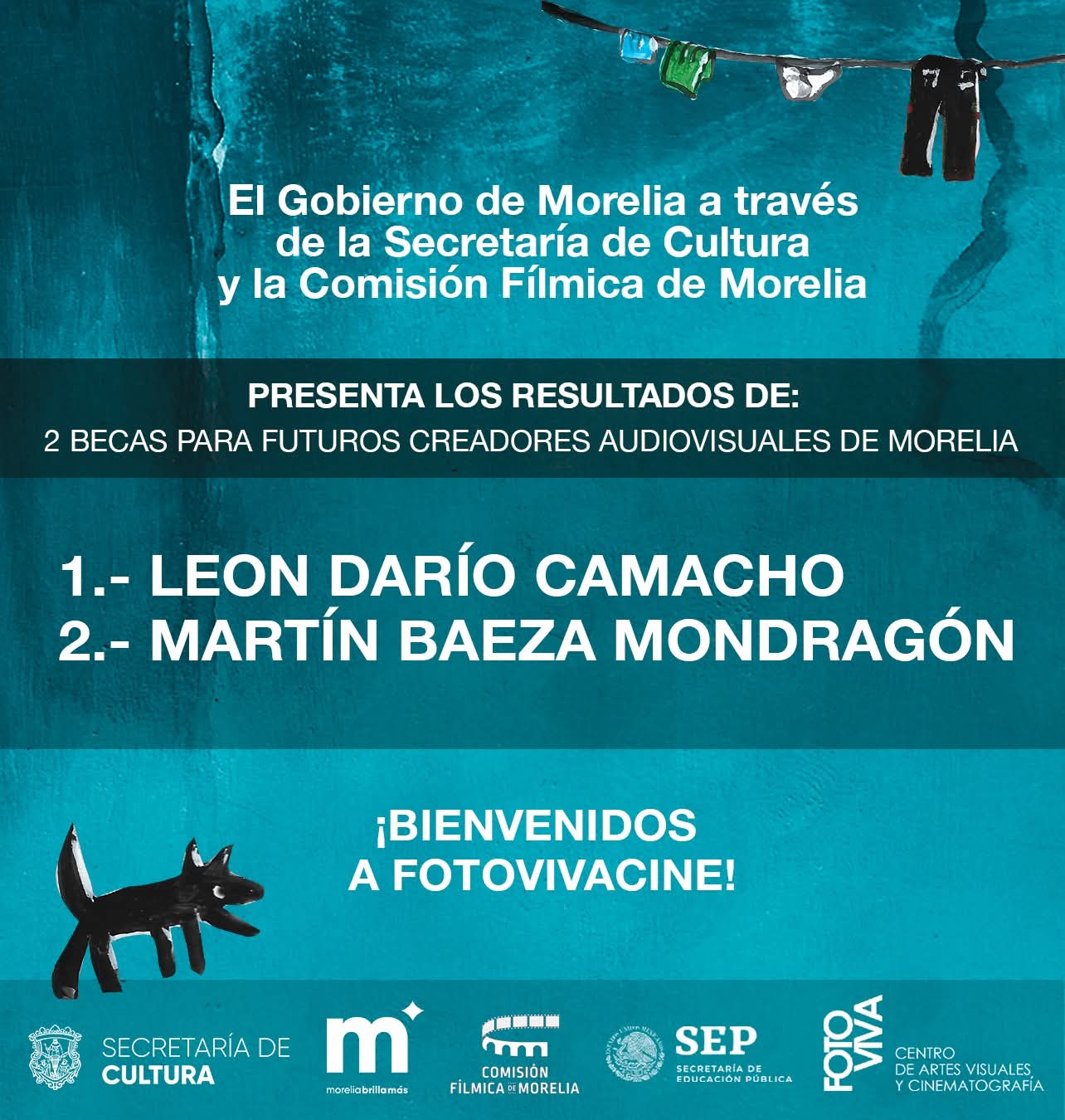 La Secretaría de Cultura de Morelia (SeCultura) y “Fotoviva” presentaron, a través de sus redes sociales, a los ganadores de la convocatoria para obtener dos becas del 50 por ciento para estudiar dentro del Proyecto Educativo en Artes y Ciencias Cinematográficas, impulsado por dicha escuela de artes.