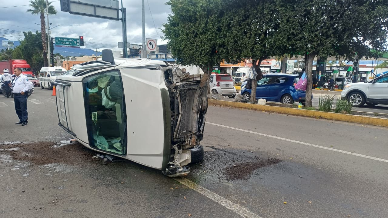 El accidente se registró la tarde de hoy en el sentido del Periférico Paseo de la República, hacia la salida a Quiroga, donde circulaba esta camioneta blanca con placas de la UCD.