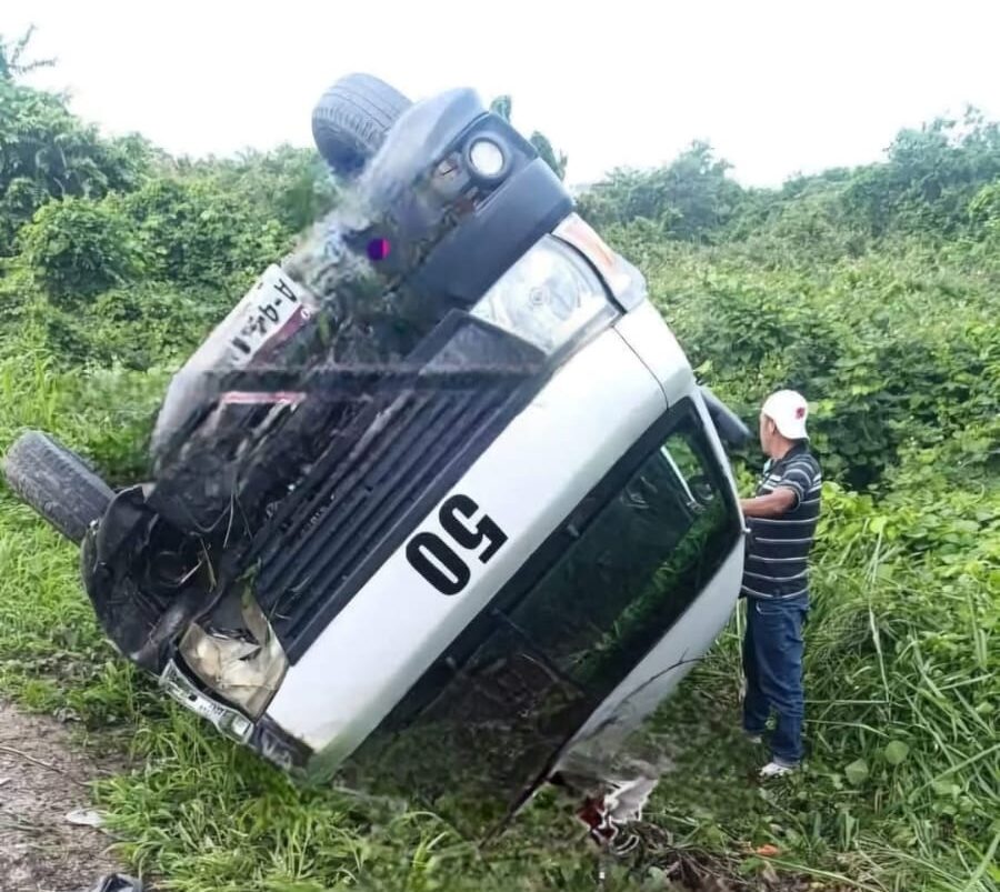 Lo que provocó que el conductor de la combi del servicio público perdiera el control y volcara, quedando fuera de la carretera.